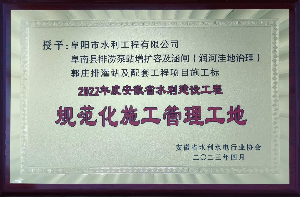 2022年度安徽省水利建設工程規范化施工管理工地